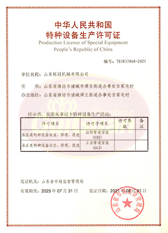 山東桂冠機械有限公司成立于2008年,注冊資金1600萬元,現有員工200多人,中高級技術管理人員45人,占地面積27000多平方米,生產車間面積12000多平方米。公司具備壓力容器產品的設計、制造(證書編號為:TS2237703-2025)、壓力管道安裝(證書編號為TS3837607-2025)全套壓力容器資質;通過國家ISO9001質量管理體系認證、美國ASME認證、歐盟CE認證;擁有建筑安裝機電工程專業承包叁級資質、建筑工程施工總承包叁級資質及對外貿易經營出口權…